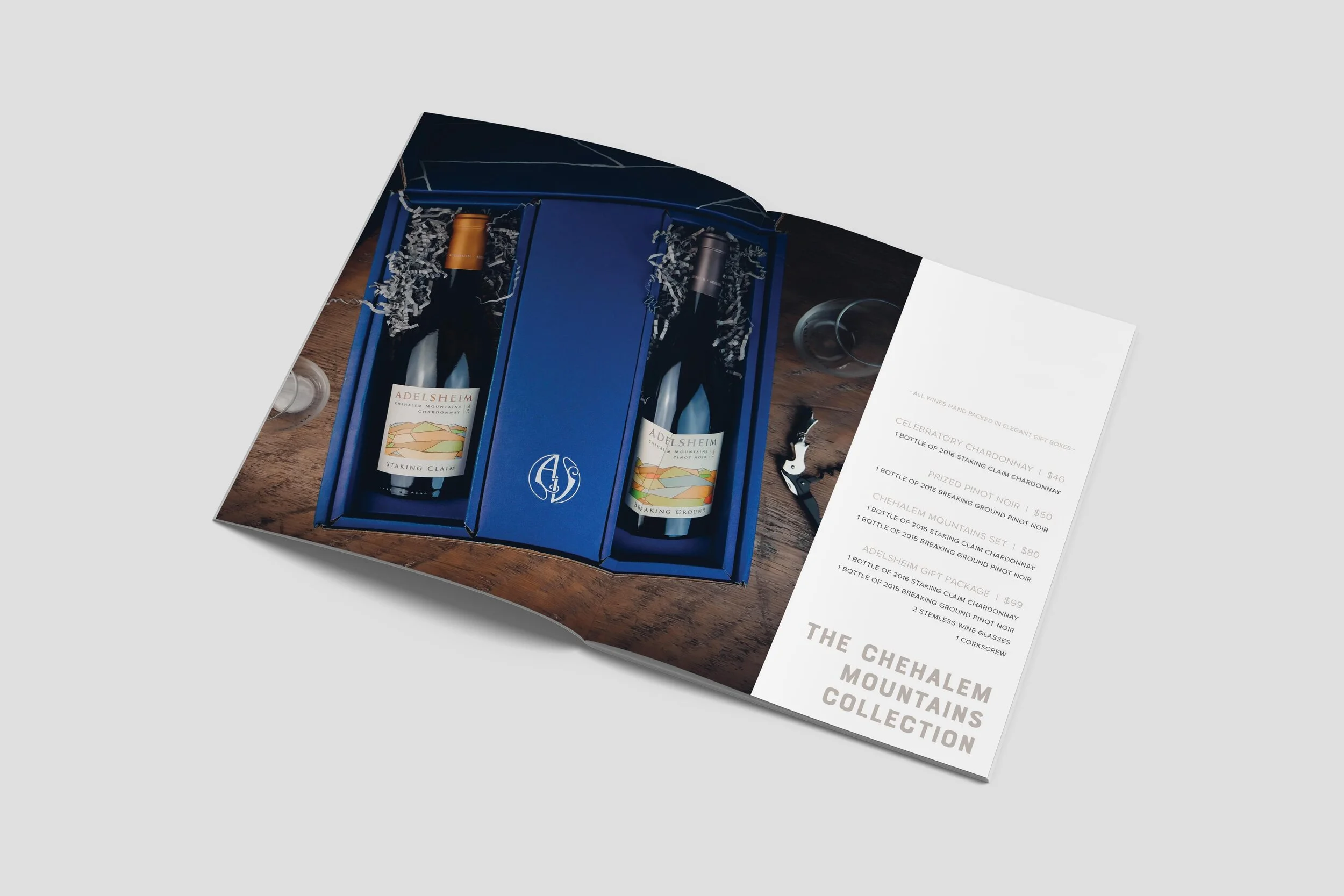 I was tasked with providing the sales team at Adelsheim Vineyard’s with corporate and distribution materials. To set-up each member of the team for success, we designed and created personalized printed materials for each region of distribution. In addition we launched a tiered corporate gifting program. Prior to launch, I was asked to create storytelling sales materials and packaging. I designed an unboxing experience that would be unique to each client. The vibrant blue boxes were designed to be versatile for different bottle combinations, and included custom sales materials and etched glasses.